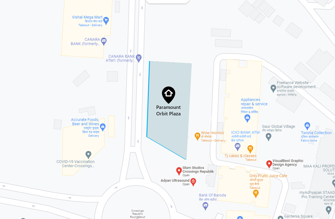 Enjoying a prime location in Crossings Republik and close proximity to Noida, Greater Noida, New Delhi, airport, road, and rail terminals, Orbit Plaza caters to a captive clientele of more than thousands of residents of Crossing Republik, assisting in the management of their daily needs.